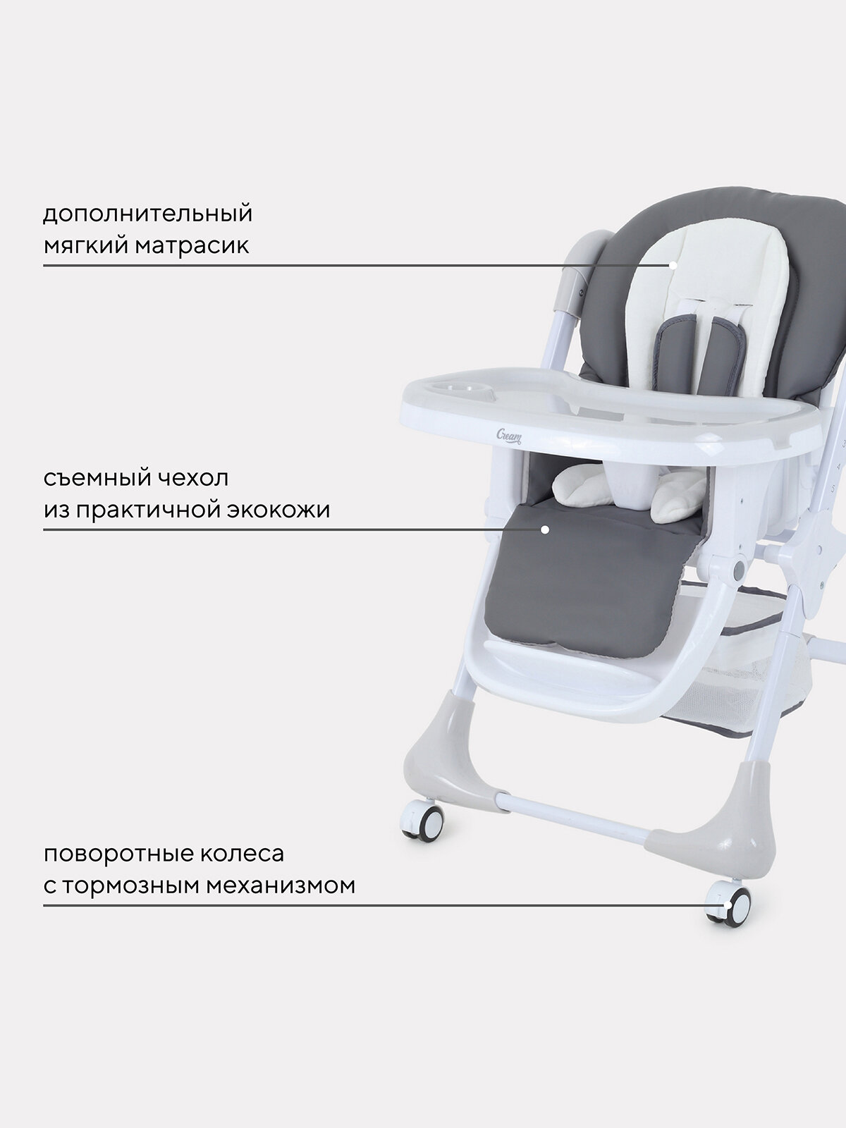 | Регулировка | высоты стульчика / наклона спинки / положения подножки / положения столика |