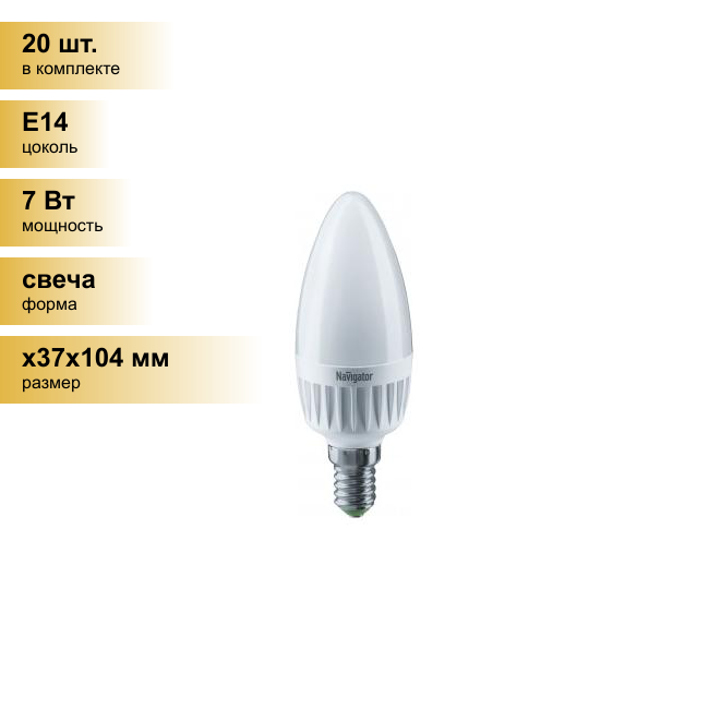Лампа светодиодная E14 Navigator Свеча, 7Вт, 2700К, лампочка 1 шт. 94491