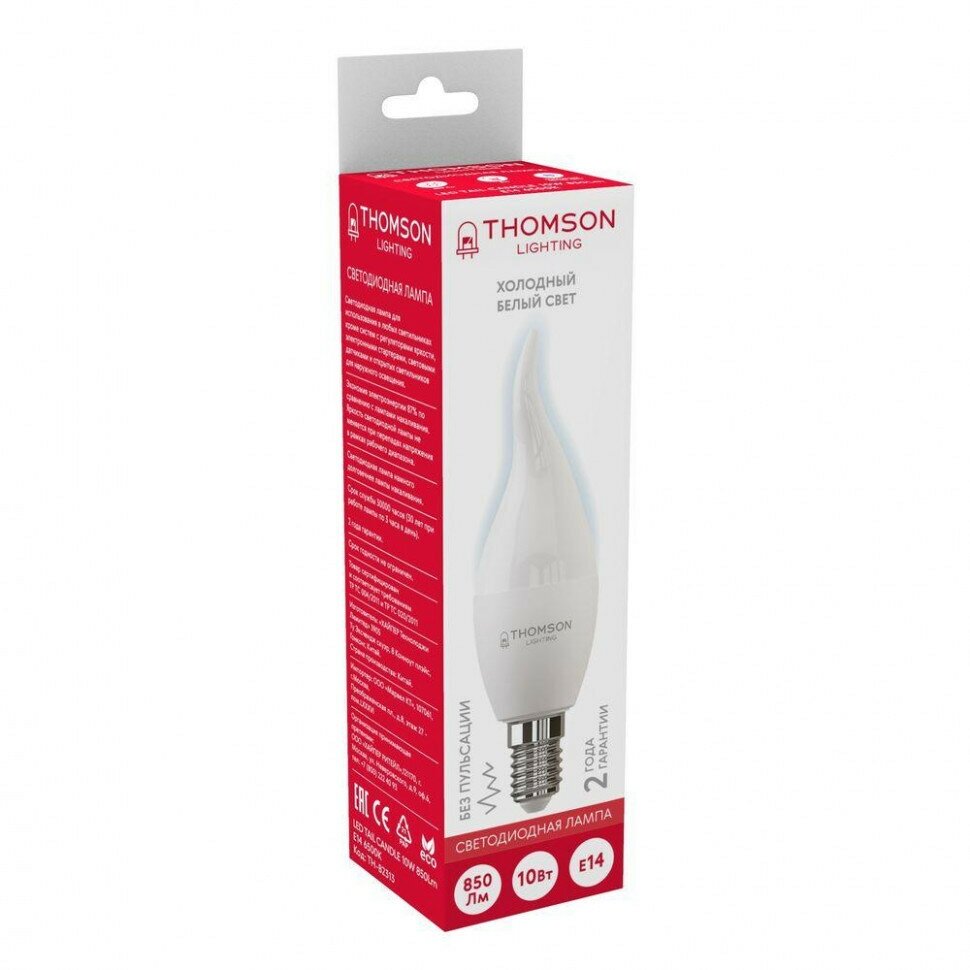 Лампа LED Thomson E14, свеча на ветру, 10Вт, 6500К, белый холодный, 1 шт.