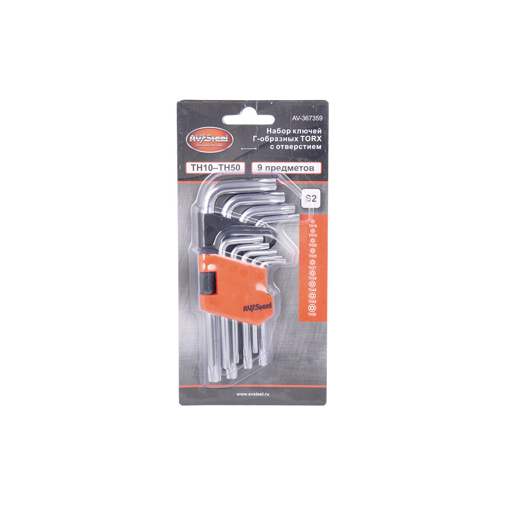 AVSTEEL AV367359 Набор ключей Г-образных TORX с отверстием TH10-TH50 S2 AV Steel 9 предм.