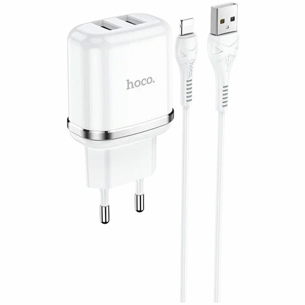 Сетевое зарядное устройство HOCO N4 Aspiring 2xUSB с Кабелем USB - Lightning, 2.4A, 10.8W, белый