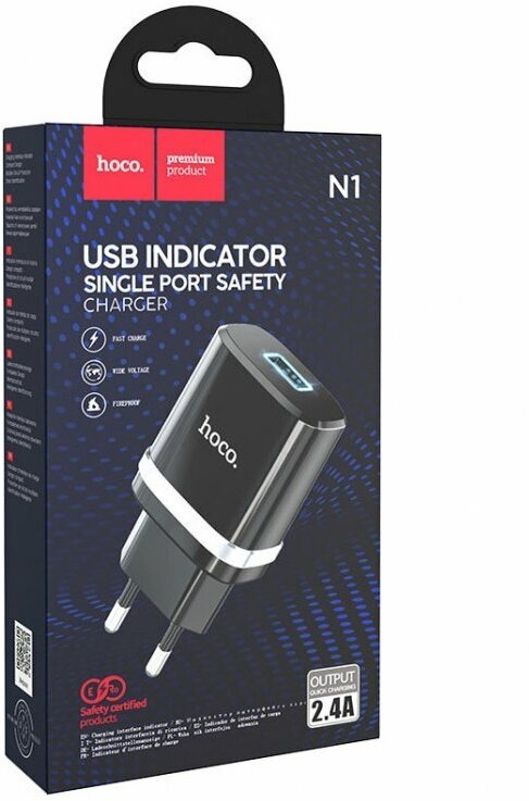 Сетевое зарядное устройство HOCO N1 USB 2.4A черное
