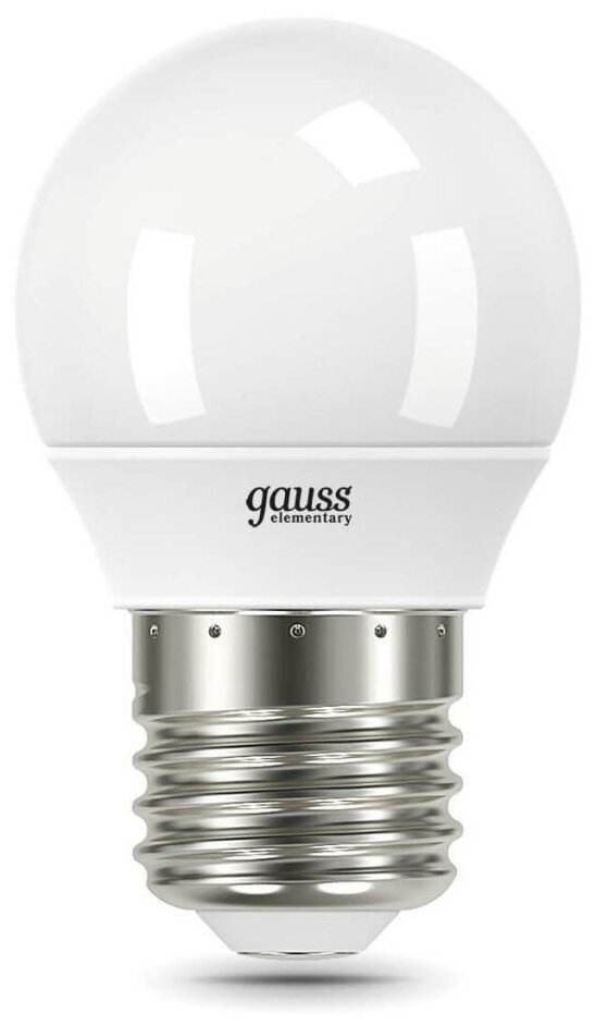 (5 шт.) Светодиодная лампочка Gauss Elementary Шар G45 E27 12W 880lm 3000K 2K 86х45 матовая, пластик/алюм. 53212 Нейтральный белый. Цоколь E27