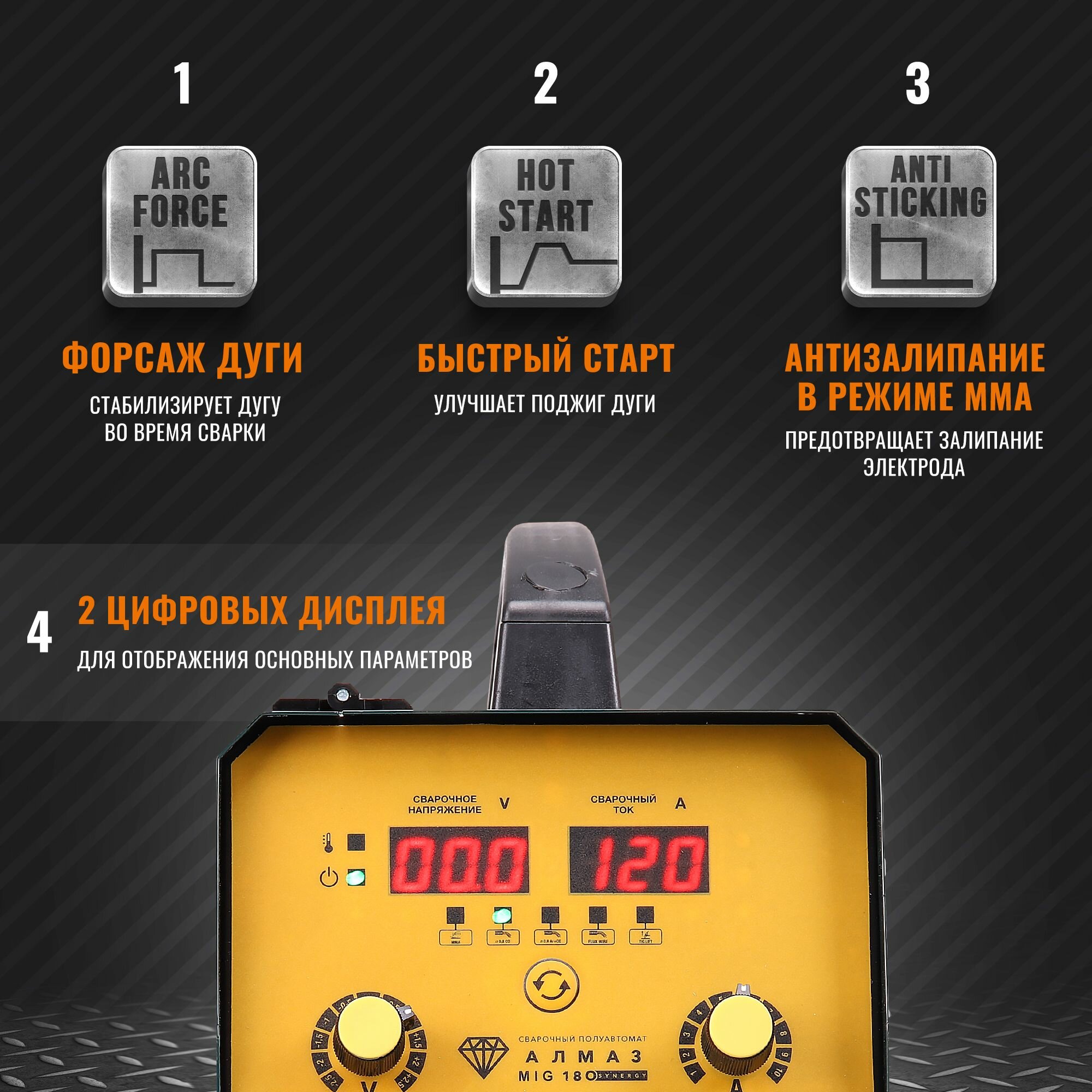 Сварочный аппарат, полуавтомат с синергетикой алмаз MIG 180 SYNERGY, 8656