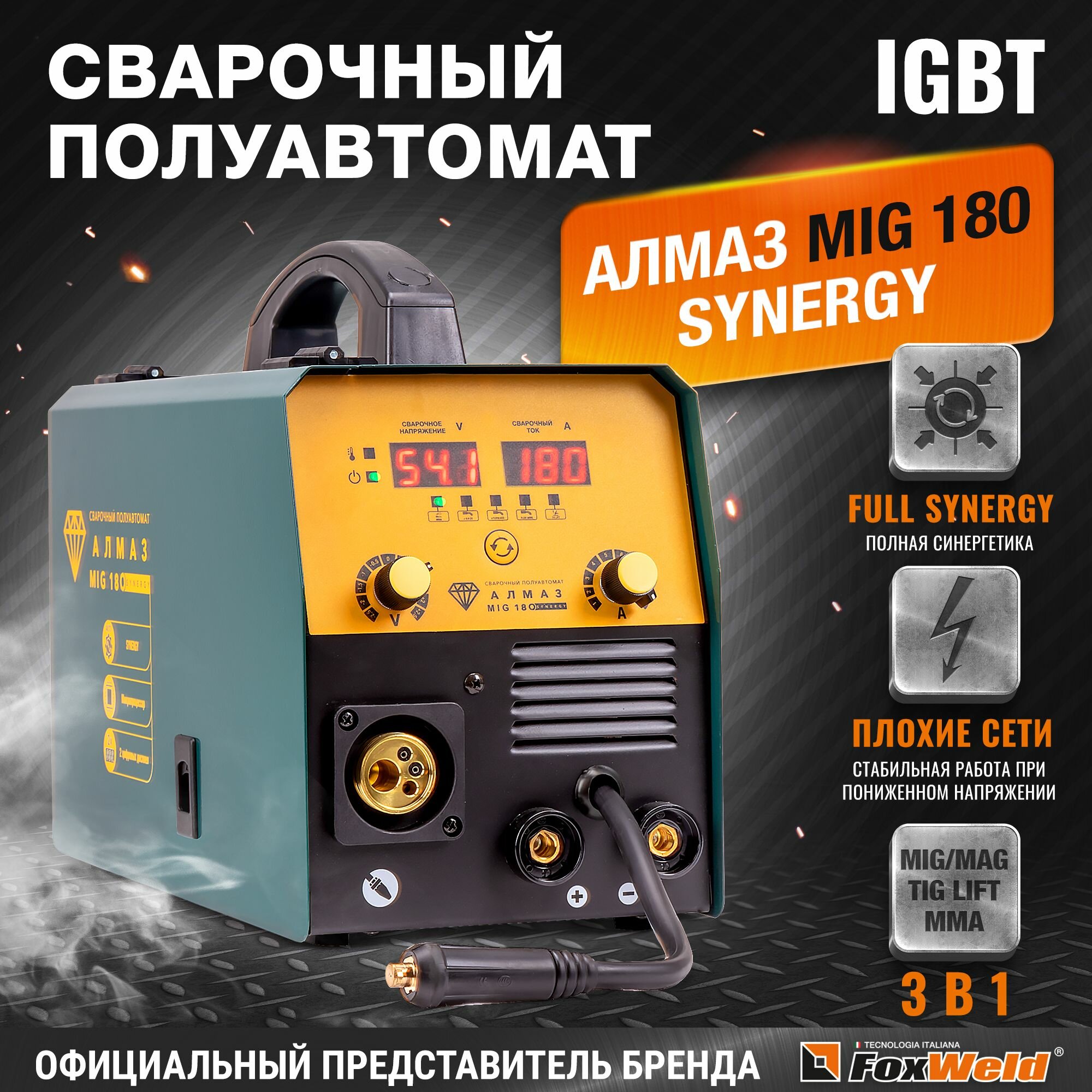 Сварочный полуавтомат алмаз MIG 180 SYNERGY (FoxWeld)