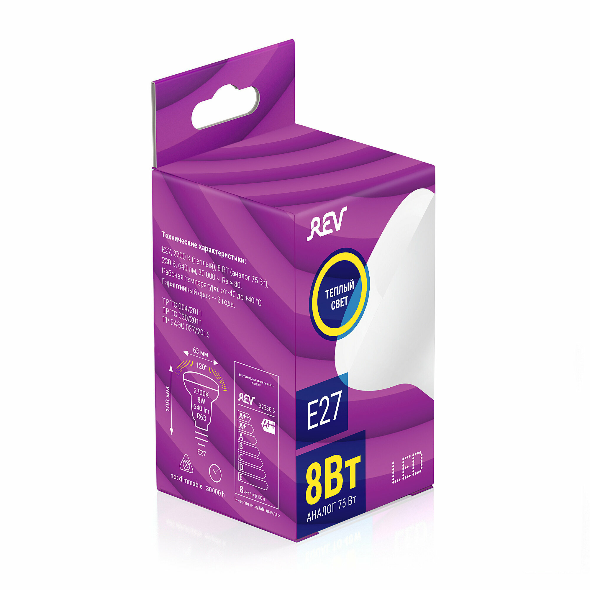 Лампа LED E27 8Вт 2700К R63 REV