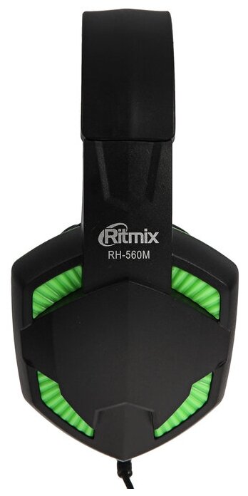 Наушники Ritmix RH-560M Gaming, игровые, полноразмерные,микрофон,3.5мм, 1.8 м, черно-зеленые (1шт)