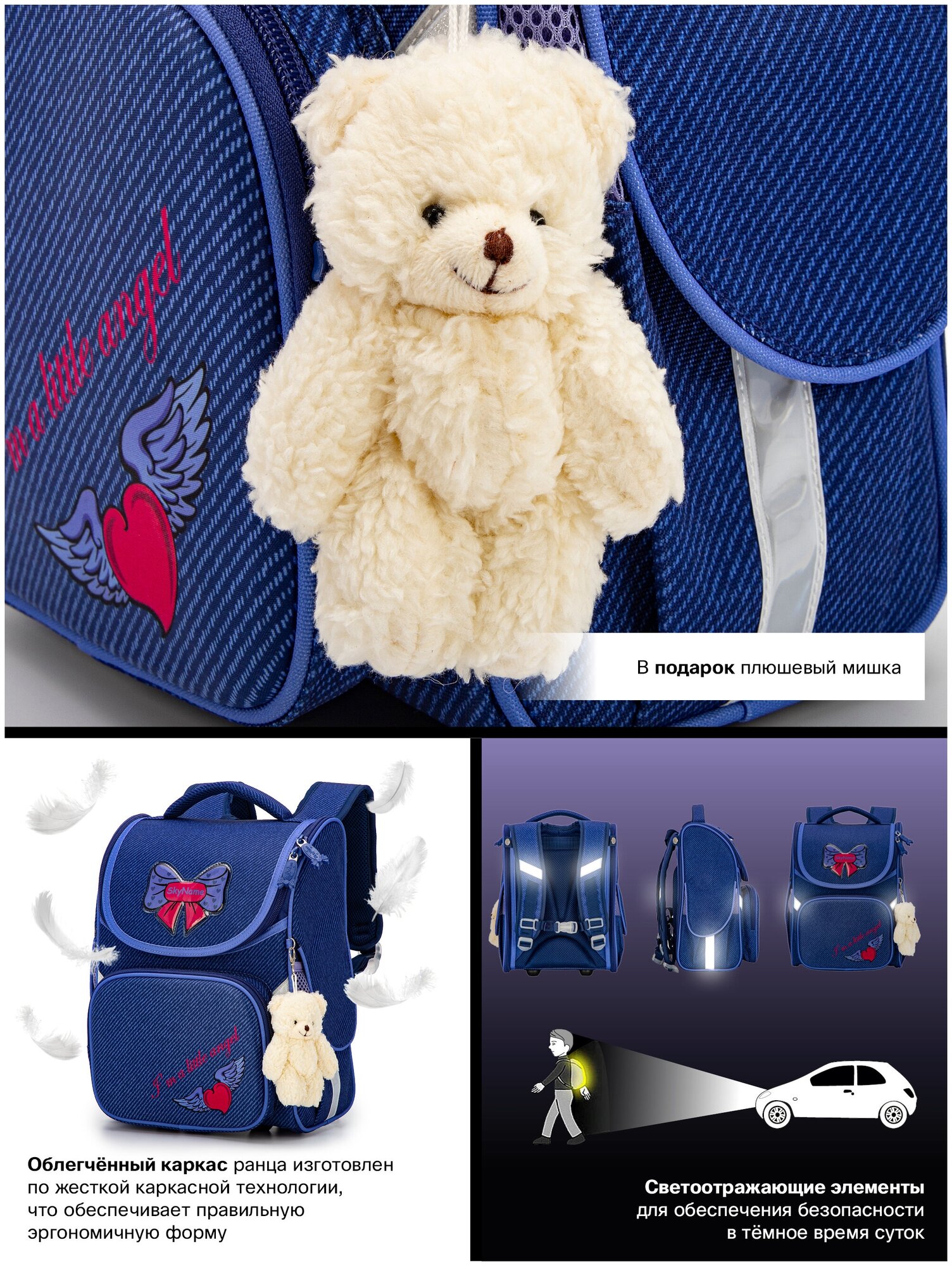 Ранец школьный для девочки с анатомической спинкой для начальной школы, 14,5 л, SkyName (СкайНейм), + подарок брелок мишка
