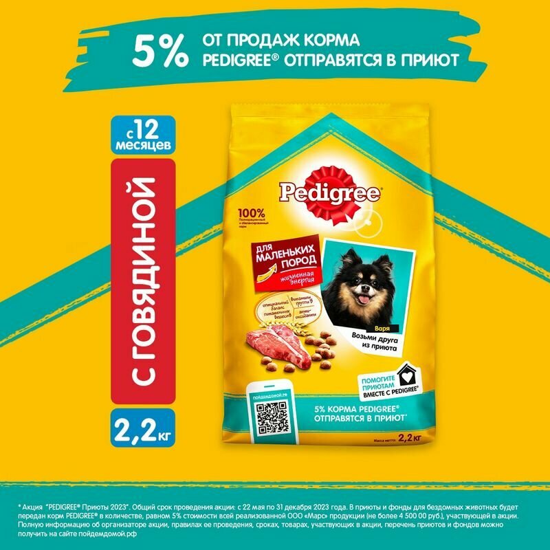Корм для собак PEDIGREE для мелких пород говядина, рис, овощи сух. 2,2кг