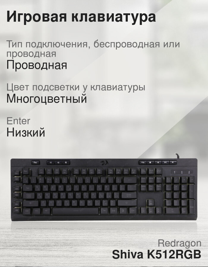 Игровая клавиатура Redragon Shiva RU, RGB, 26 anti-ghost keys