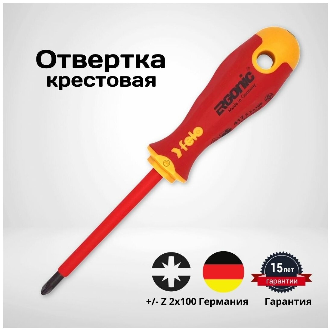 Купить Отвертка крестовая диэлектрическая Felo Ergonic +/- Z 2X100