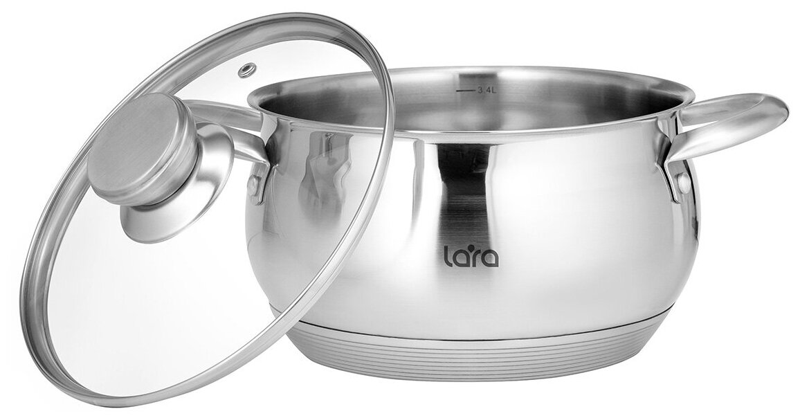 LR02-422 Кастрюля LARA (нерж) серия <майами> 3,5л 20x11,5см, капс. 9-ступенч.дно, крышка, шкала