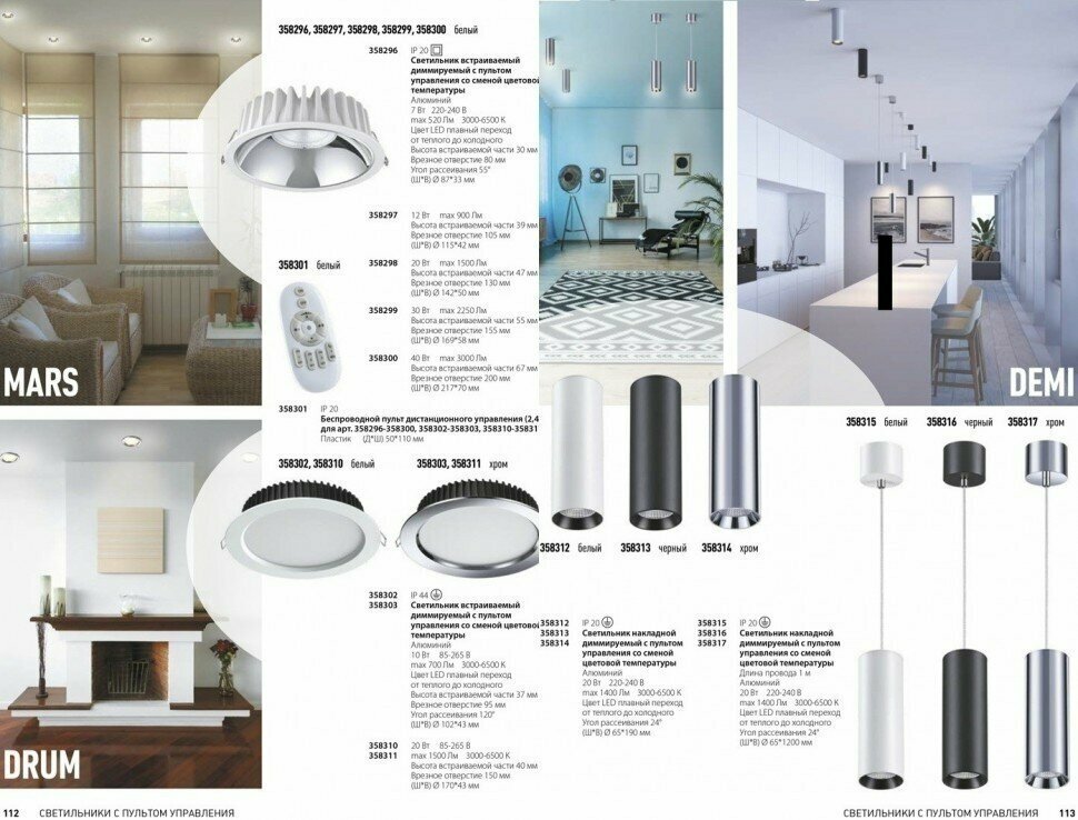 Светильник накладной диммируемый со сменой цветовой температуры, управление – пульт ДУ (арт.358301) Novotech 358314 DEMI