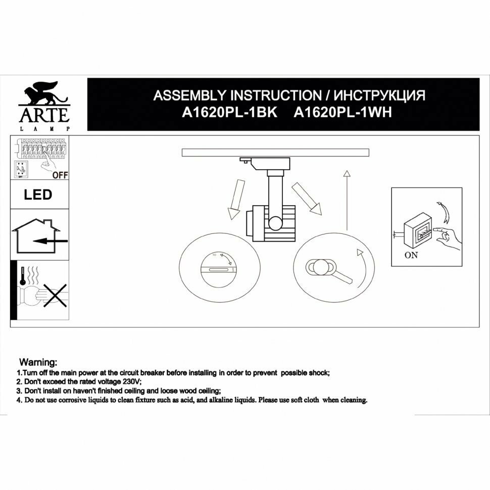 | Подробная комплектация | Споты и трек-системы Arte Lamp A1620PL-1WH |