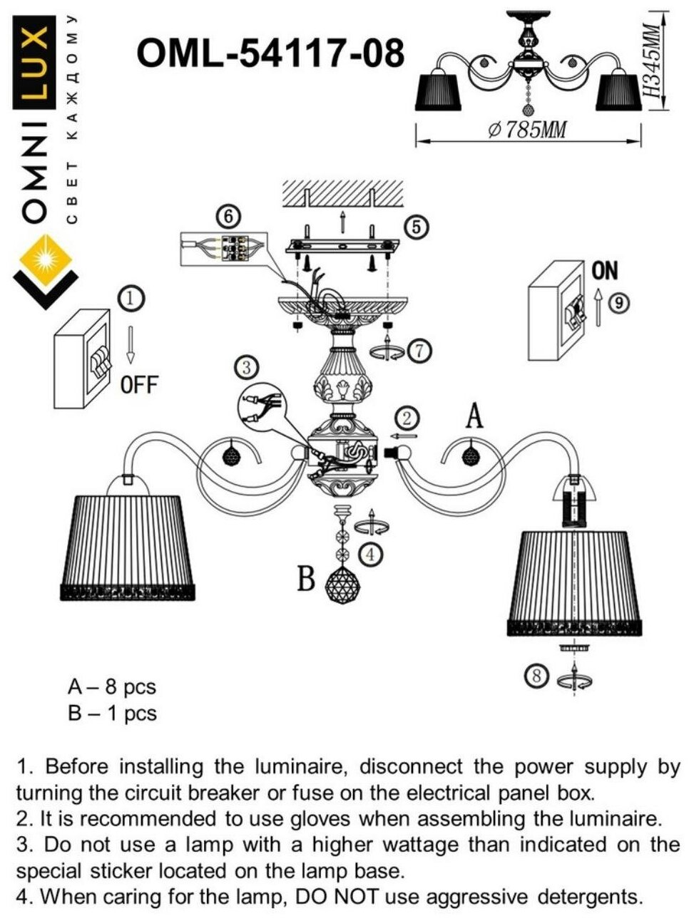 OML-54117-08 Люстра потолочная Omnilux Campovaglio