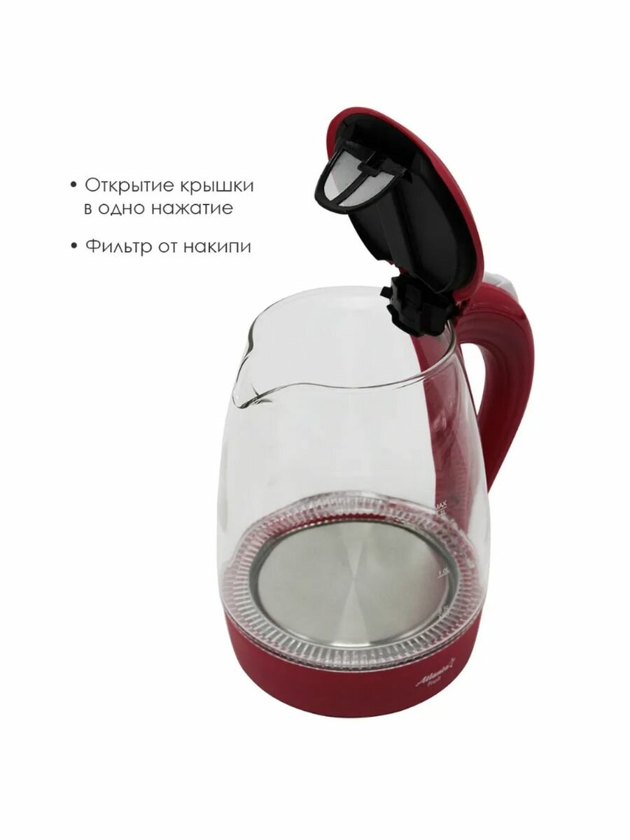 Чайник электрический ATLANTA ATH-2461 1,7л стекло красный