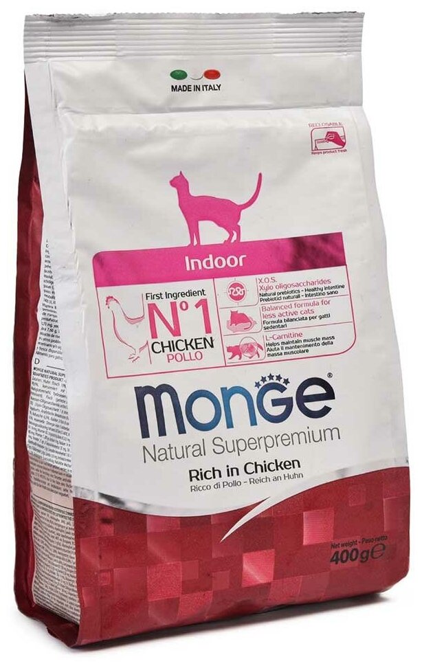 Сухой корм для кошек Monge Natural Superpremium, для живущих в помещении, с курицей 400 г