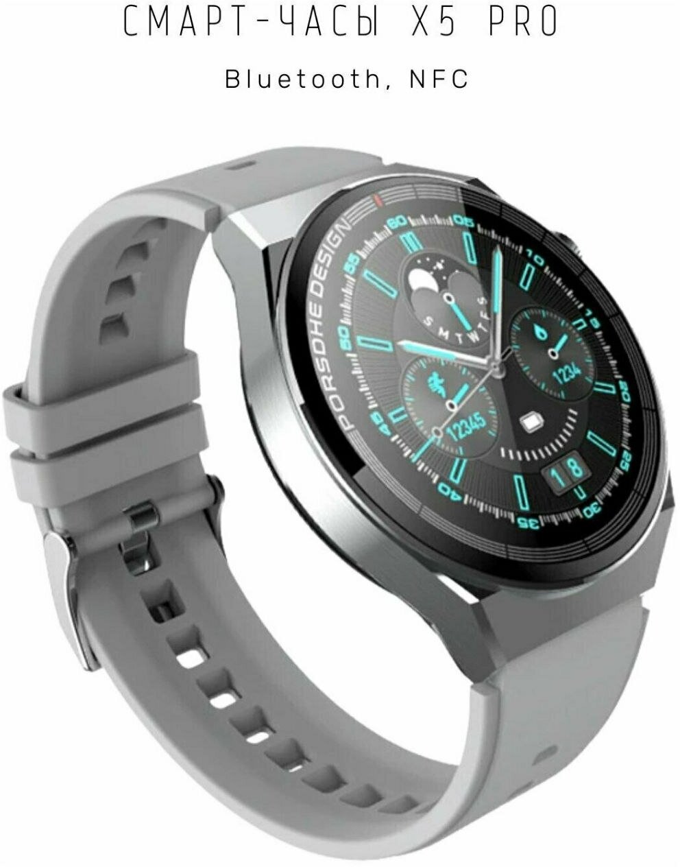 Купить Умные смарт-часы премиум New G-P60 Pro /NFC/с измерением давления, пульса/микрофон/динамик/мощная батарея/программа "здоровье" - Серый