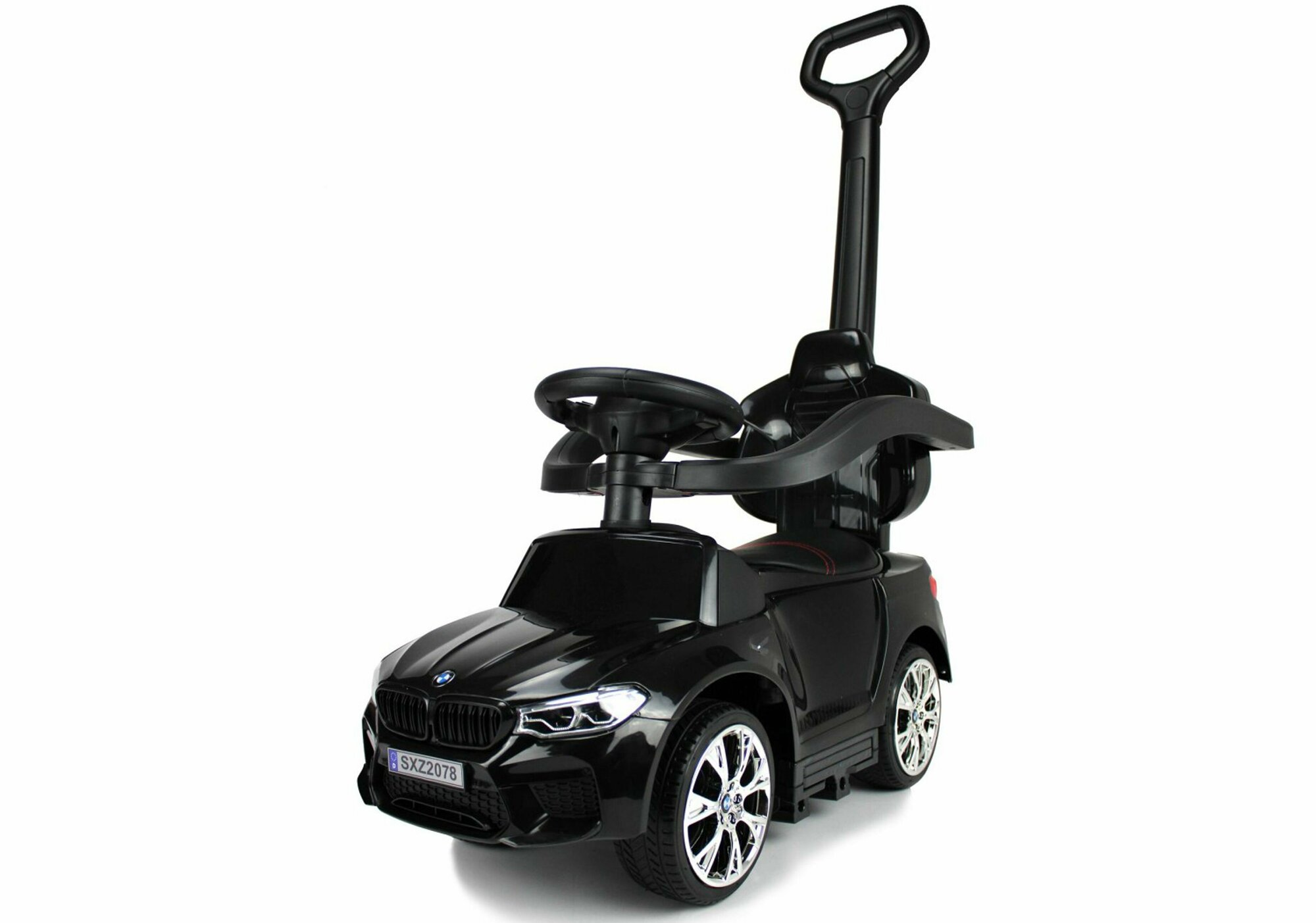 Толокар каталка BMW M5 с ручкой свет/звук/резина/кожа с качалкой