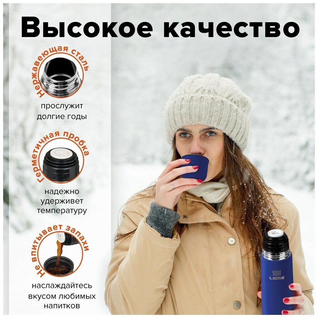 Термос Laima классический с узким горлом, 1 л, нержавеющая сталь, синий, 605124