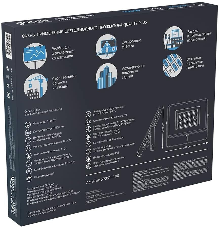 Прожектор Gauss Qplus 100W 8500lm 6500K 175-265V LED 690511100