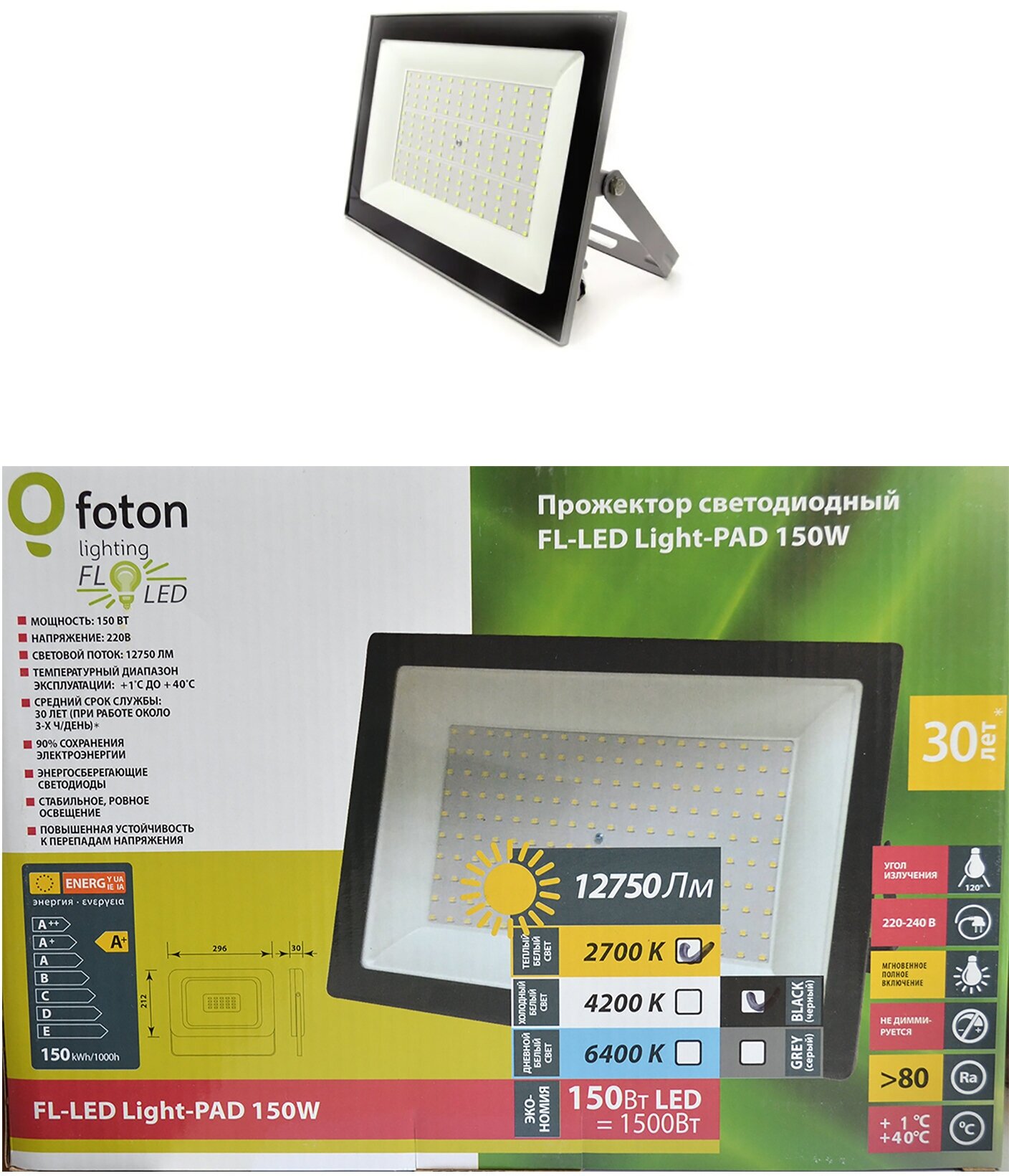 Прожектор FOTON FL-LED Light-PAD 150W Black 2700К 12750Лм 150Вт
