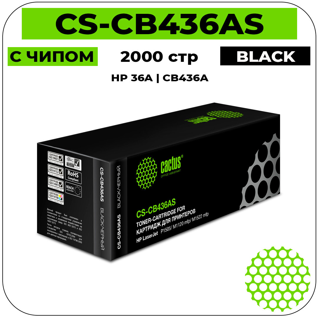 Cactus CB436A Картридж CS-CB436AS для LJ P1505 M1120 mfp M1522 mfp 2000 стр.
