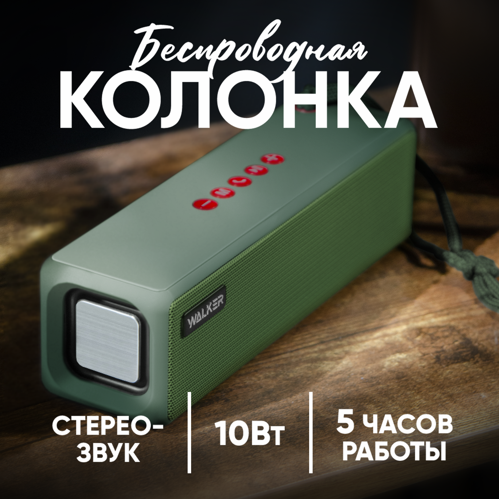 СохранитьПортативная колонка bluetooth 5.0, WALKER WSP-130, 2 динамика по 5Вт, блютуз, с подсветкой беспроводная, колонка музыкальная как jbl акустика, зеленая интересное:
