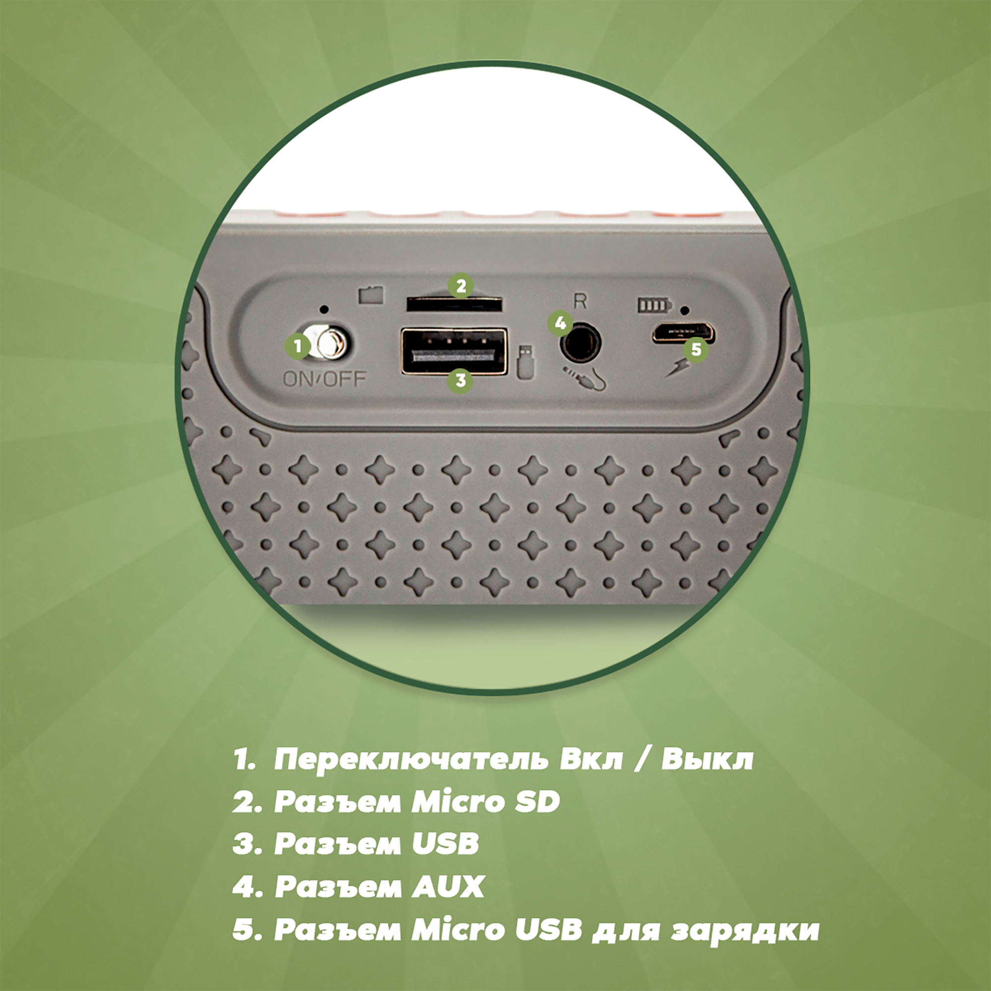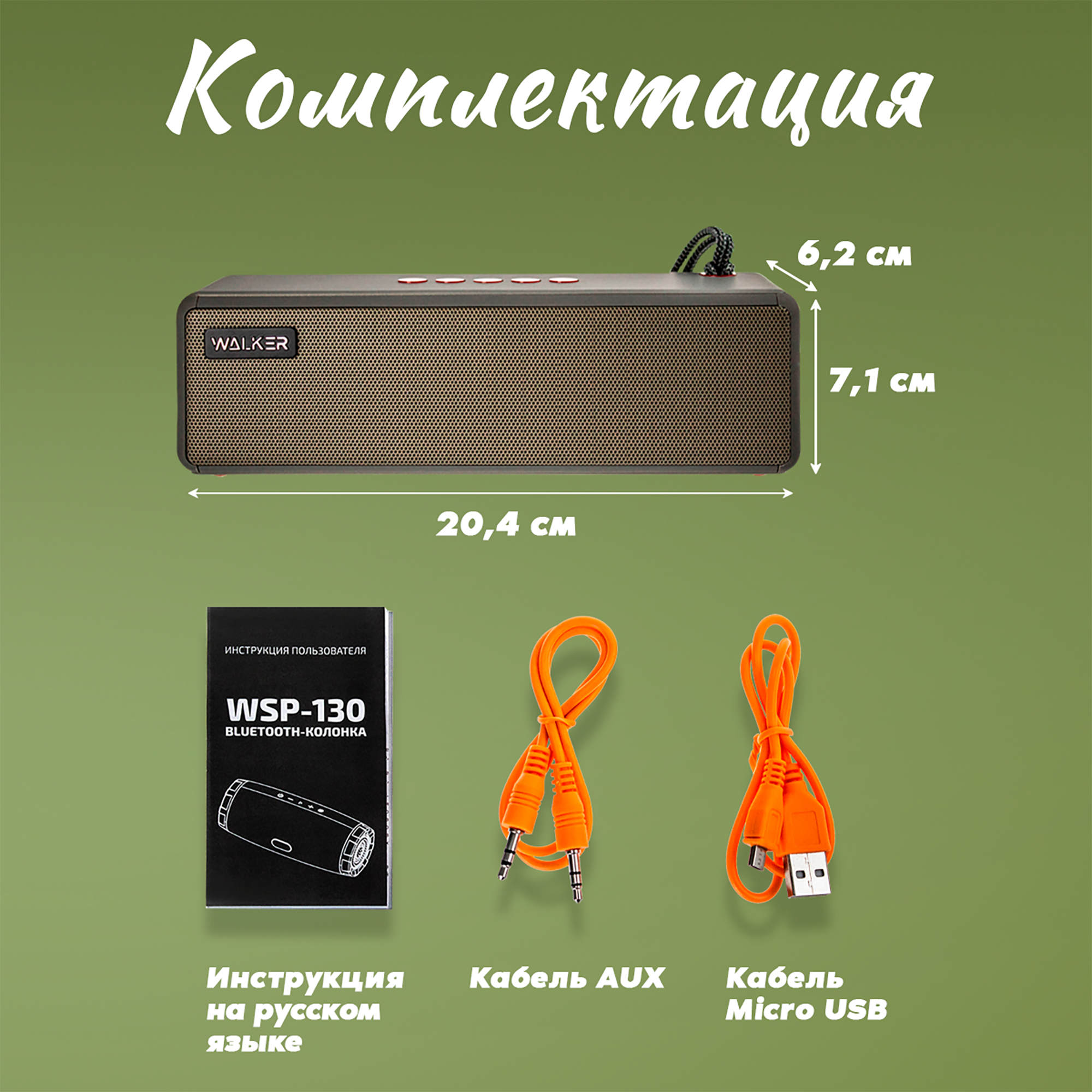 Портативная колонка bluetooth 5.0, WALKER WSP-130, 2 динамика по 5Вт, блютуз, с подсветкой беспроводная, колонка музыкальная как jbl акустика, зеленая
