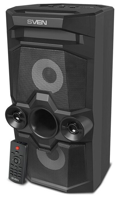 Колонка портативная SVEN PS-655, черный (50 Вт, TWS, Bluetooth, FM, USB, microSD, LED-дисплей, пульт, 2х4400мА*ч)