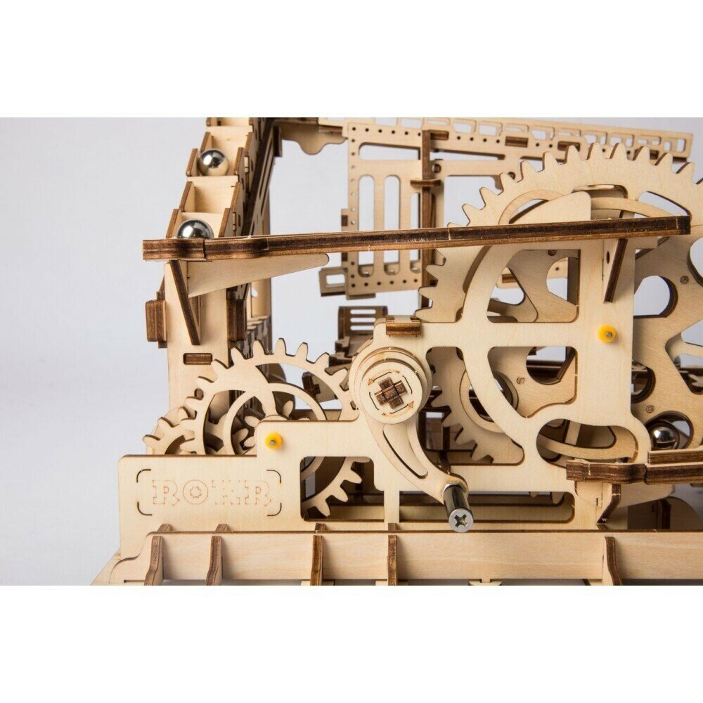 | Комплектация | 7 листов с деревянными деталями / 10 стальных шариков / пластиковые шарниры / наждачная бумага / воск / 2 гайки / 2 стальных вала / ключ |