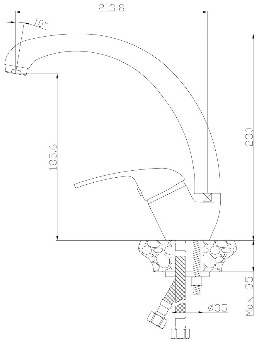 Смеситель кухня ROSSINKA картридж 40мм с поворотным изливом 180мм Y40-23