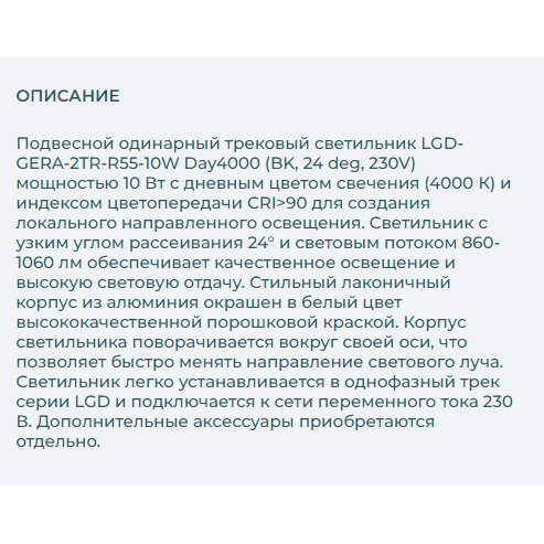 СохранитьСветильник LGD-GERA-2TR-R55-10W Day4000 (BK, 24 deg, 230V) (Arlight, IP20 Металл, 5 лет) интересное: