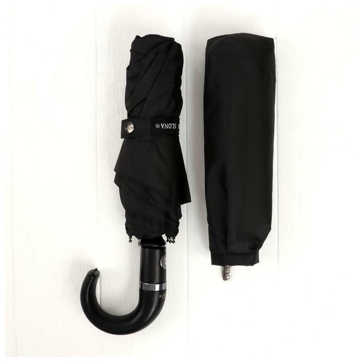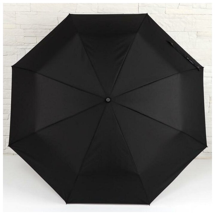Зонт Три слона, автомат, 3 сложения, купол 105 см., 8 спиц, ручка натуральная кожа, система «антиветер», чехол в комплекте, для мужчин, черный