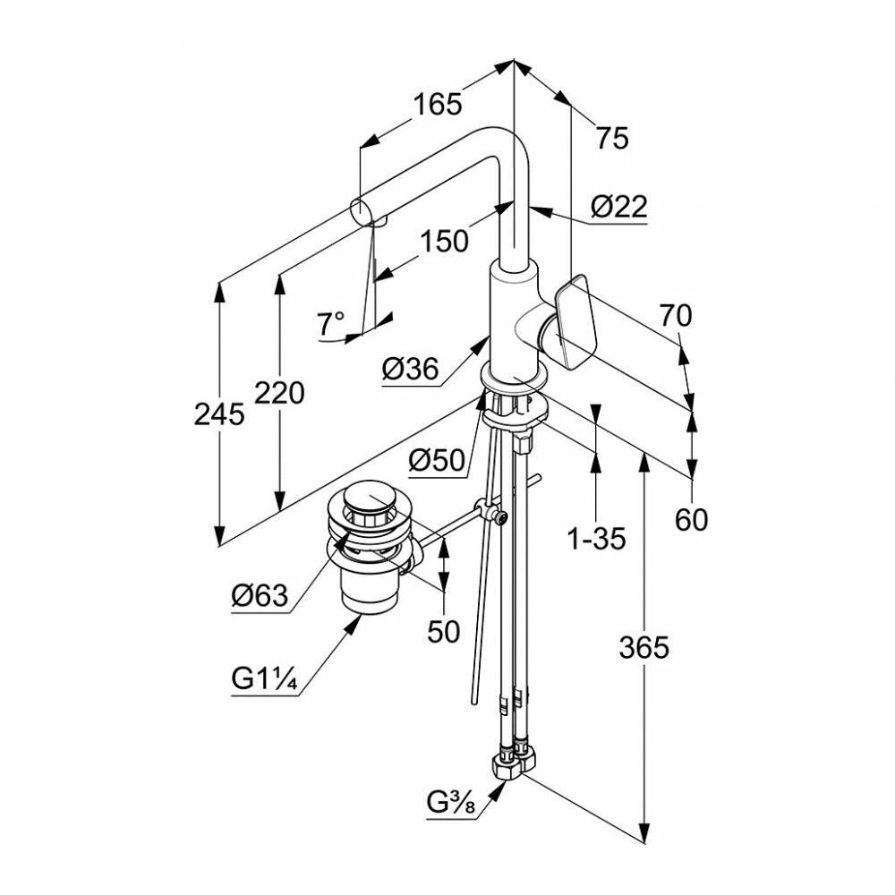 | Длина излива | 150 мм |