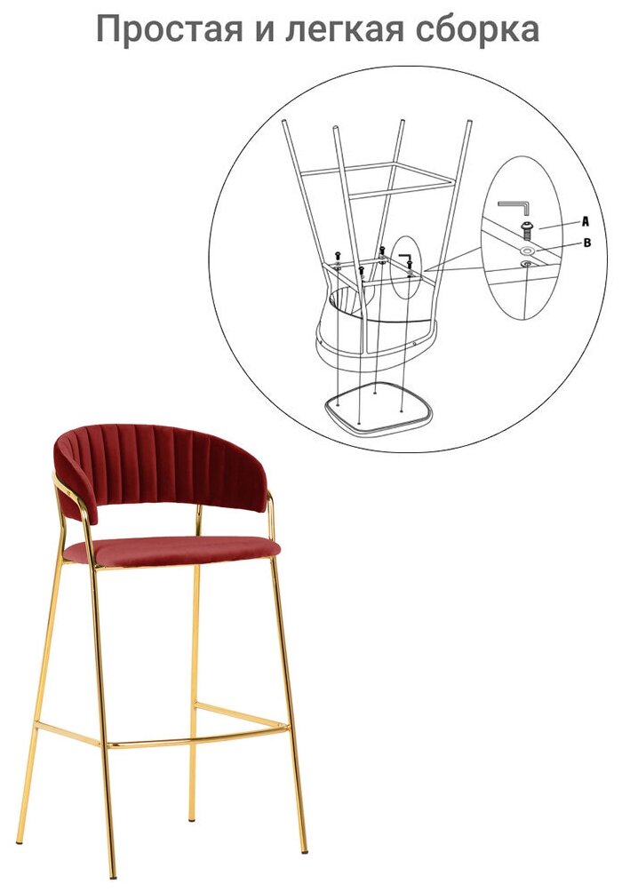 СохранитьСтул полубарный Turin винный с золотыми ножками / Барный стул для дома / Стул кухонный мягкий со спинкой / Стул велюр / Стулья барные для кухни мягкие интересное: