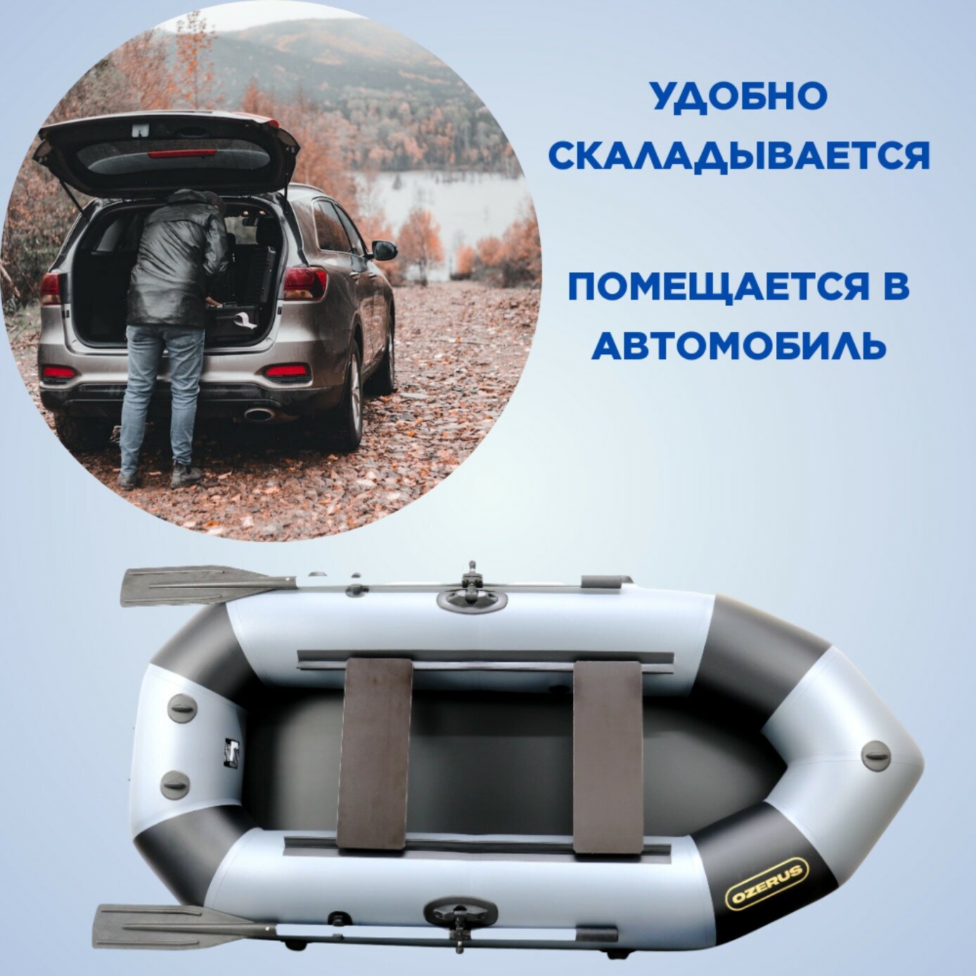 Купить Лодка ПВХ надувная для рыбалки двухместная OZERUS 240, серо-черная