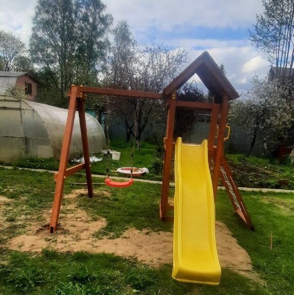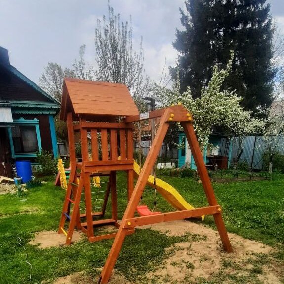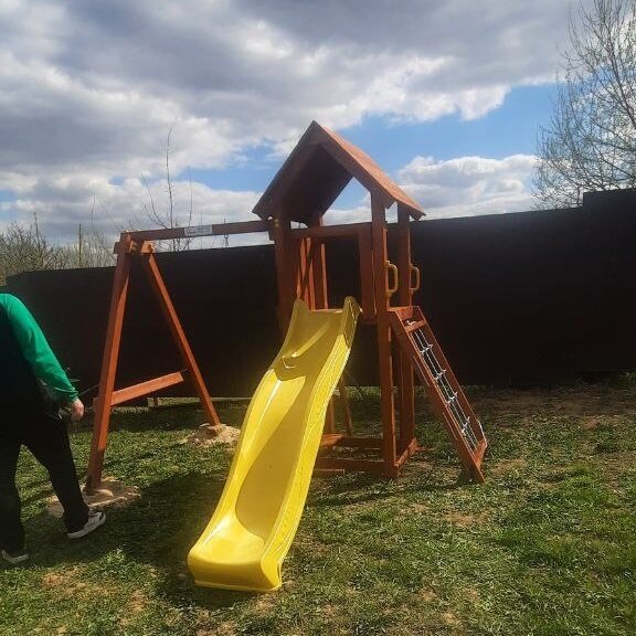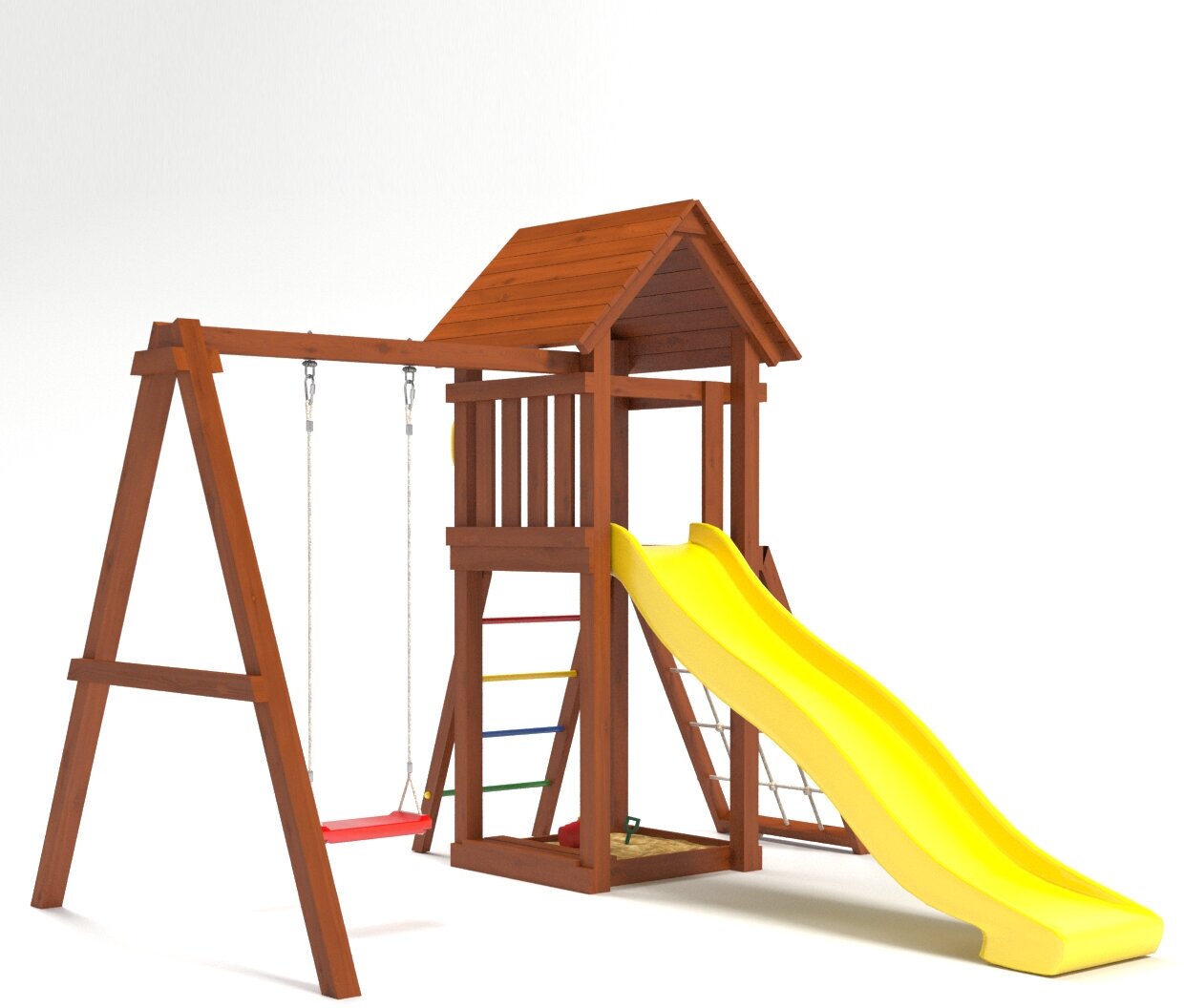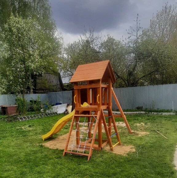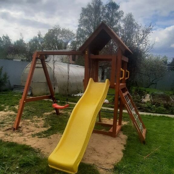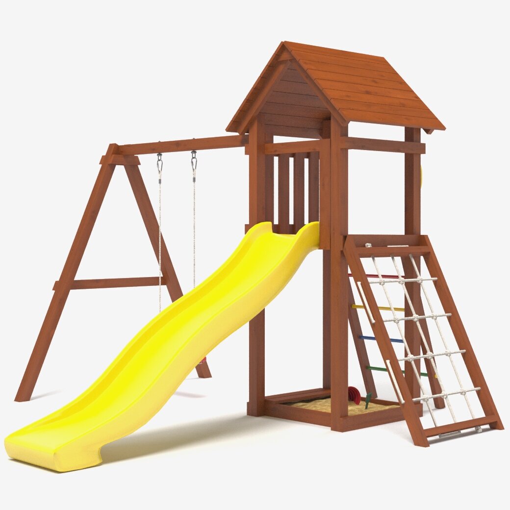 | В комплекте | горка, качели, песочница, сетка для лазания |