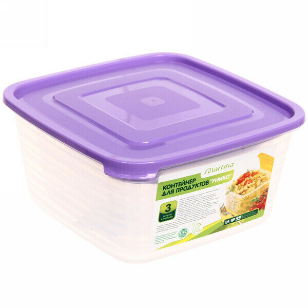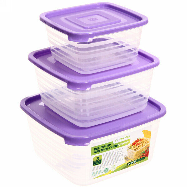 Martika Контейнер для продуктов СВЧ квадратный набор: 0,45л,0,9л,1,4л Унико С219,3 шт/уп