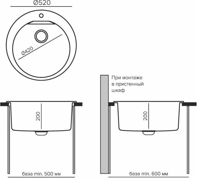 Мойки Polygran ATOL-520, мойка, мрамор, черный 16