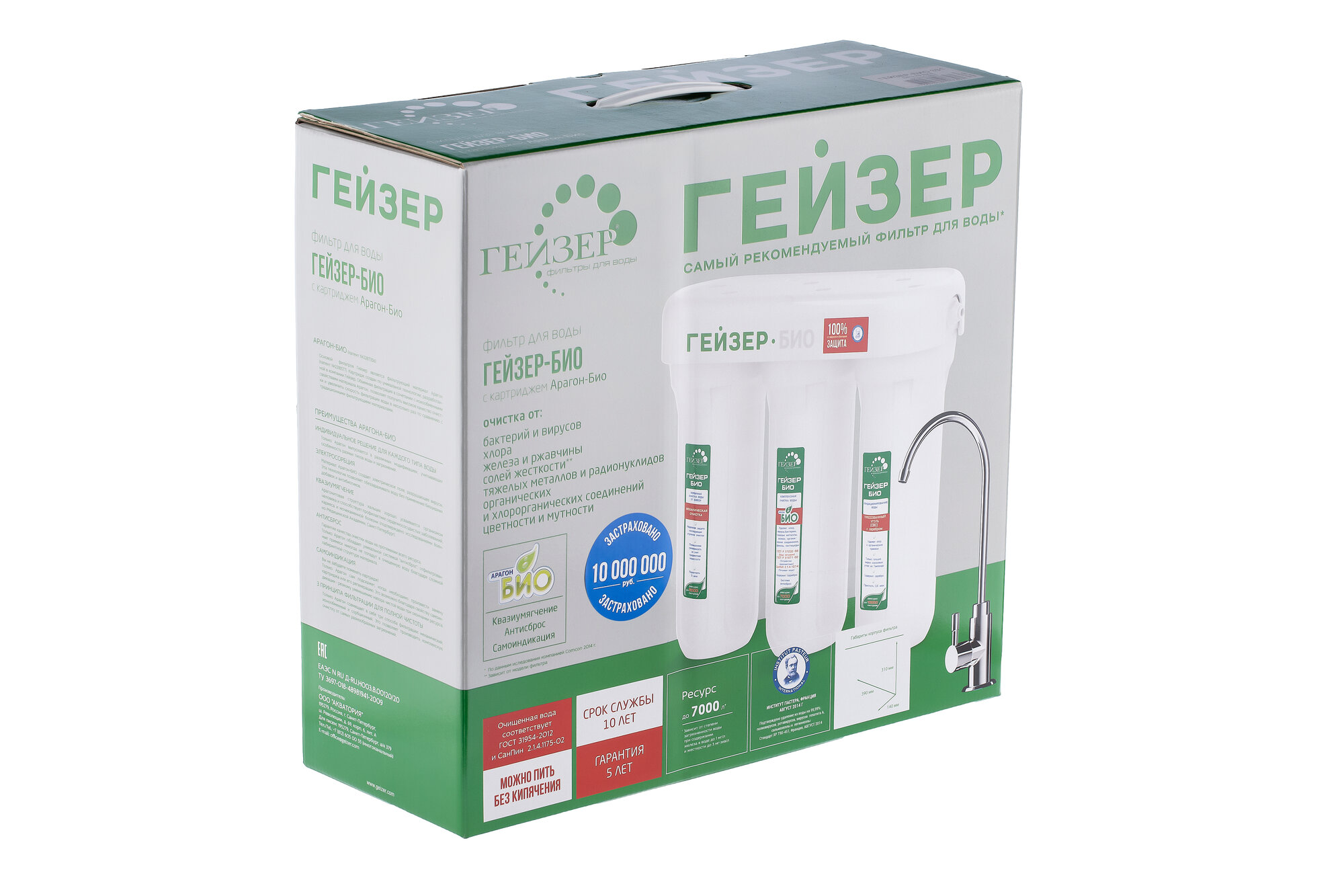 Фильтр для воды под мойку Гейзер Био 331, без крана, 100% удаление бактерий и вирусов, идеальное решение для семей с маленькими детьми, 16022