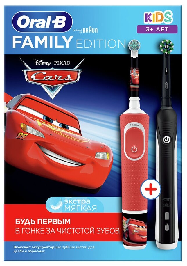 Набор электрических зубных щеток Oral-B Family Edition Pro 1 700+Kids Cars цвет:черный и красный