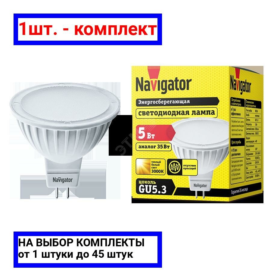 Лампа светодиодная Navigator 94263, GU5.3, MR16, 5 Вт, 3000 К