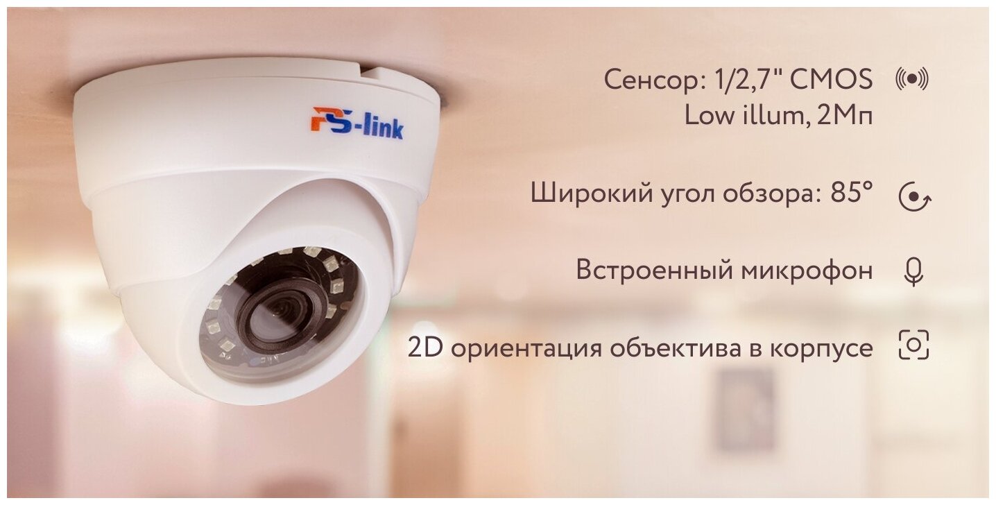 Камера видеонаблюдения AHD Ps-Link AHD302M Купольная 2Мп с микрофоном интересное: