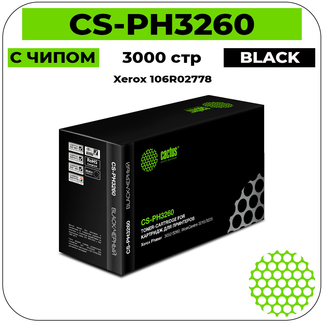 Cactus Расходные материалы CS-PH3260 Картридж черный для Xerox Phaser 106R02778 3052 3052NI 3260 3000стр.