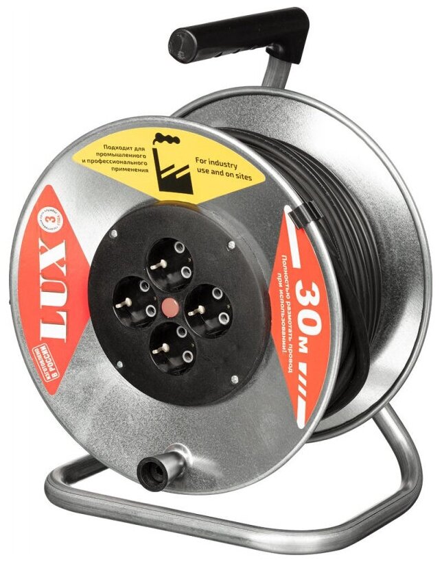 Удлинитель на катушке LUX КГ 3x2.5, 16А, 4 розетки с заземлением, длина 30м (45130)