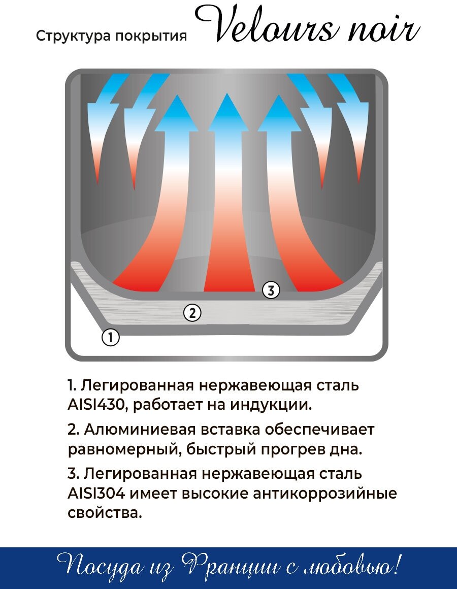 Набор 4 предмета Vensal Velours noir из 2-х кастрюль 3л (20см) и 5,4л (24см) из нерж. стали, арт. VS1504 интересное: