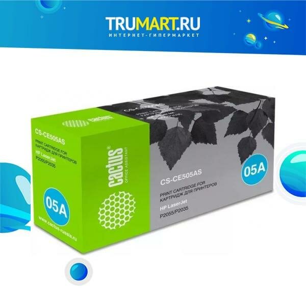 Картридж Cactus CS-CE505AS, черный, 2300 страниц, совместимый для LaserJet P2035 / P2035n / P2055 / P2055d / P2055dn / P2055d