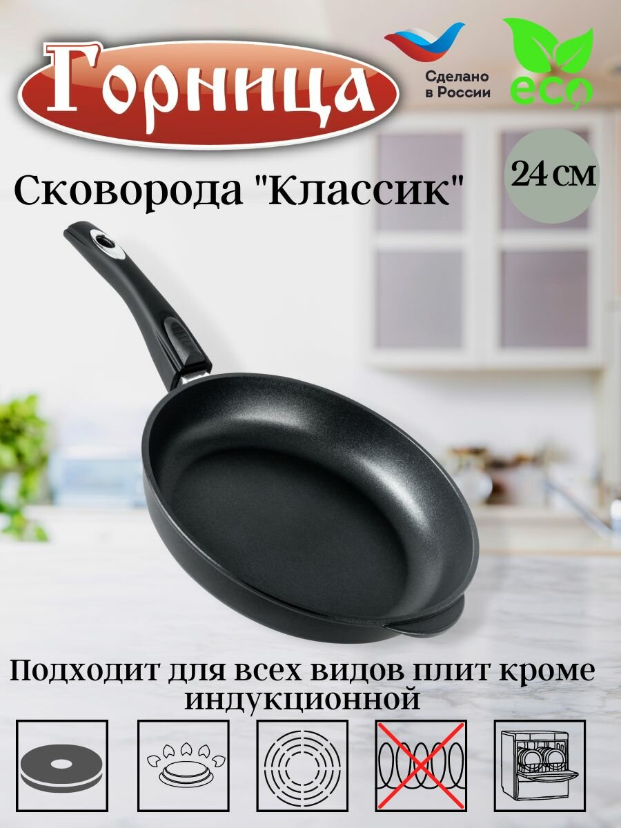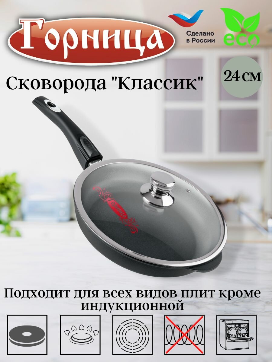 Сковорода 240/55мм со съемной ручкой с крышкой с2413а