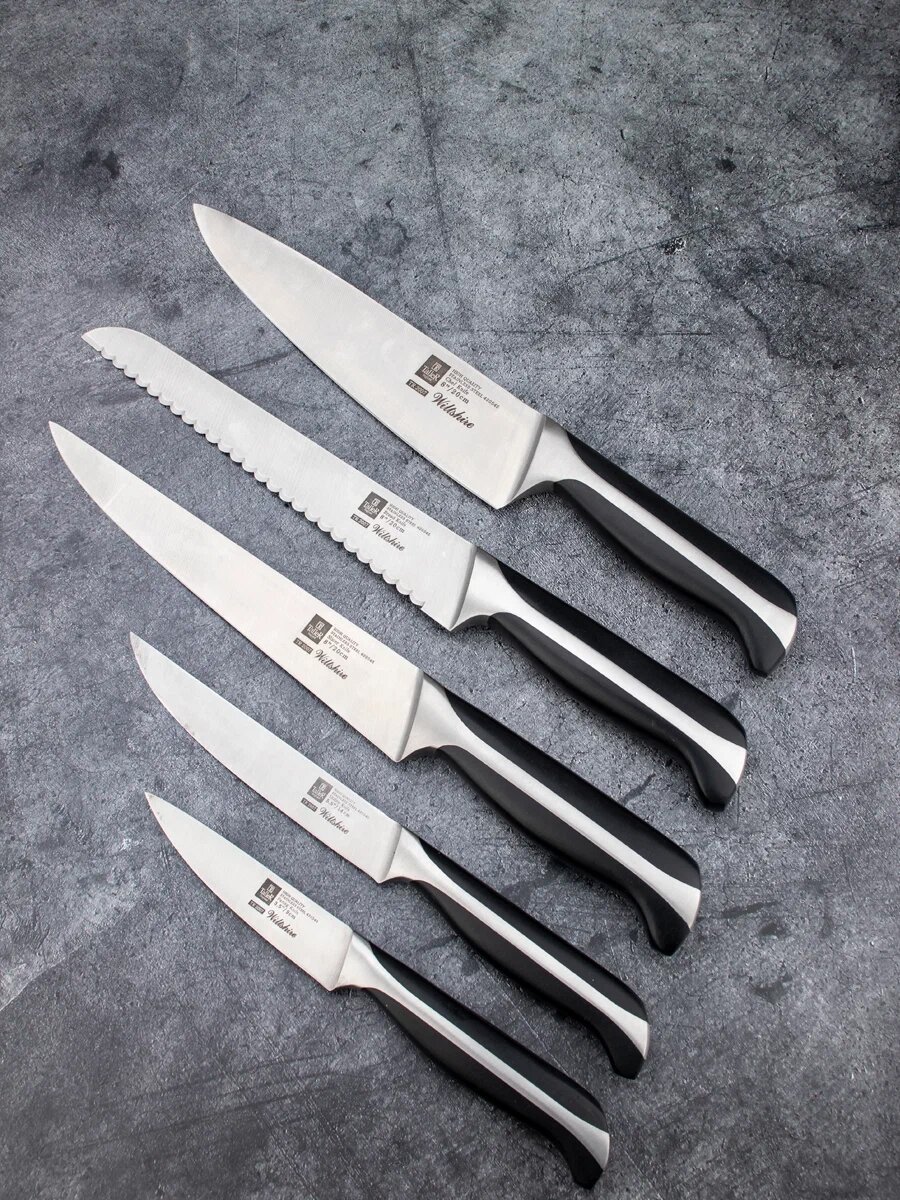 | Типы ножей в наборе | нож для овощей, нож для хлеба, универсальный нож, филейный нож, шеф-нож |